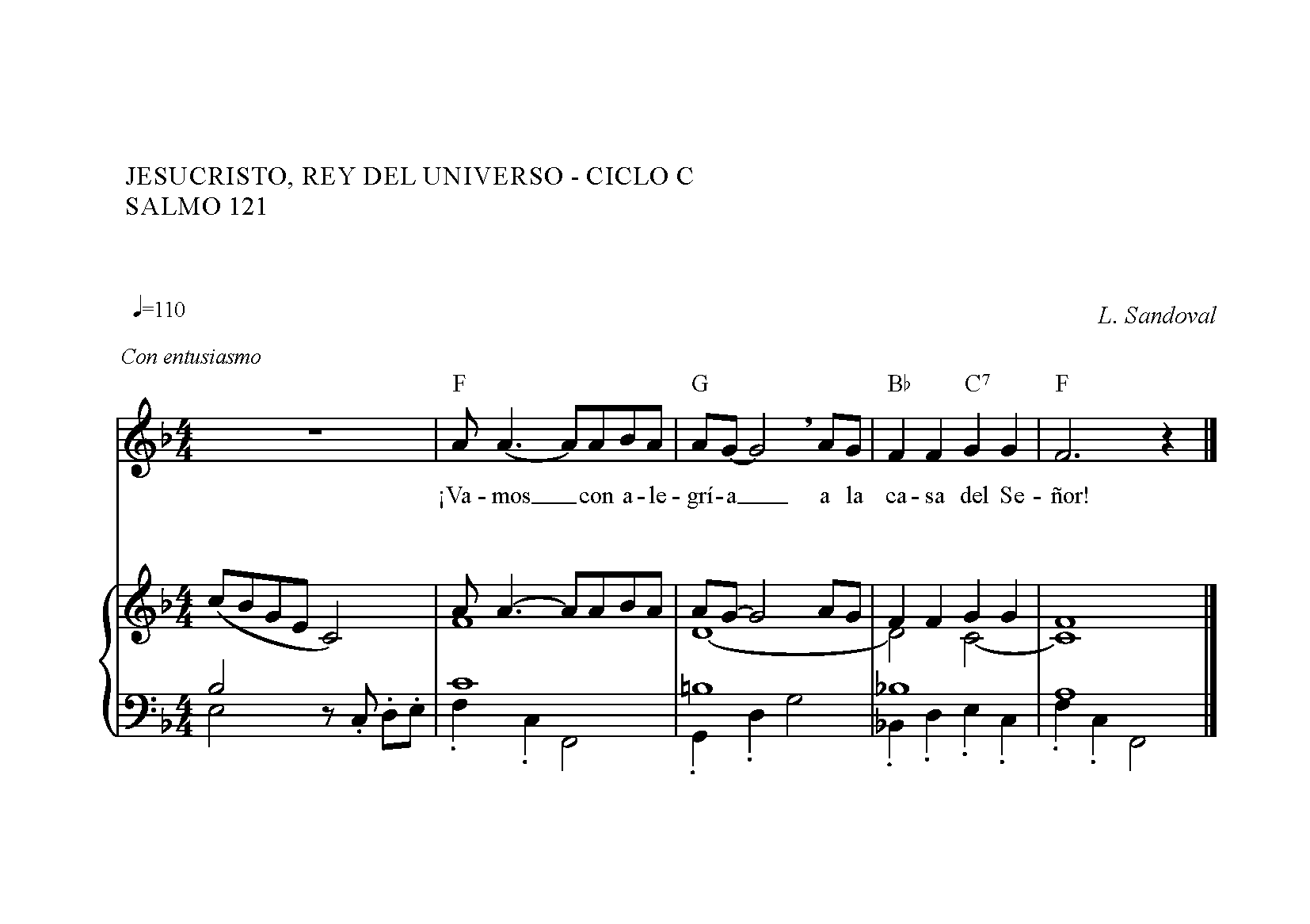 Partitura y audio mp3 de la antífona correspondiente al salmo responsorial de la solemnidad de Cristo Rey del Universo.